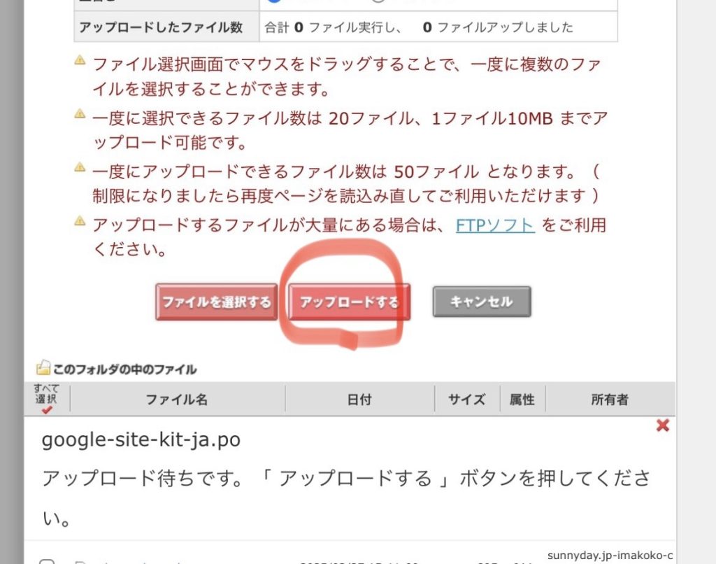 6. アップロードを押します。アップロードが順次開始されます。全て終わったら完了です。