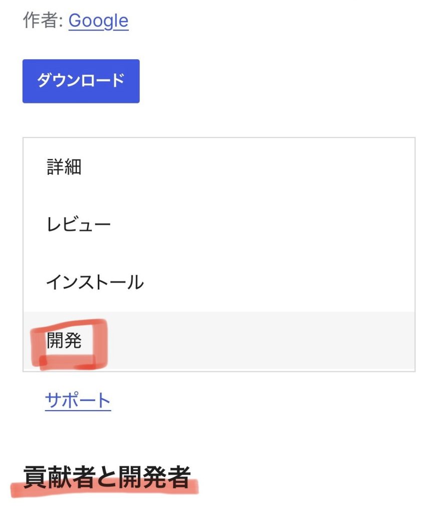 6. 日本語訳では詳細、レビュー、インストール、開発と項目が並んでいるので開発を押す。