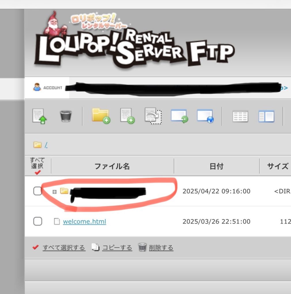 1. ロリポップサーバー画面で「ロリポップ!FTP」を開く