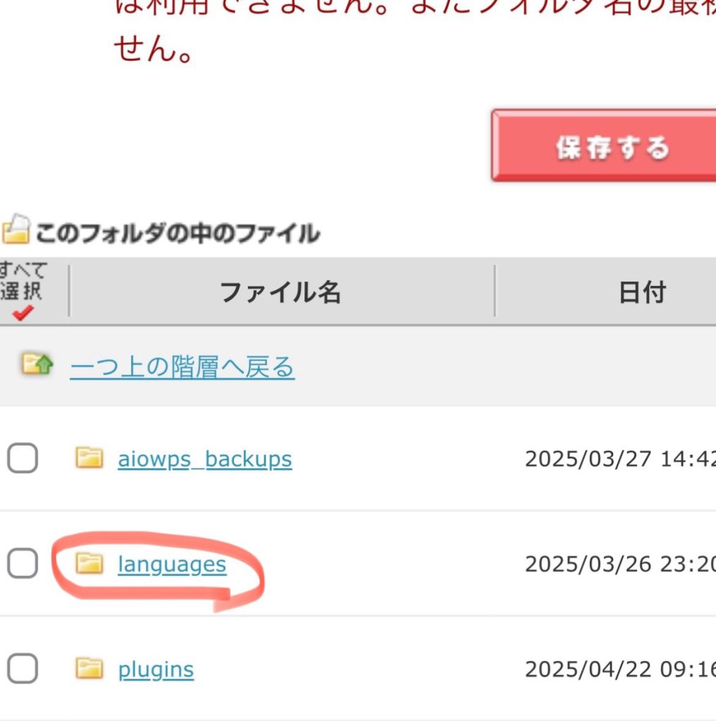 3.ダウンロードした言語パックをレンタルサーバーにアップロードする