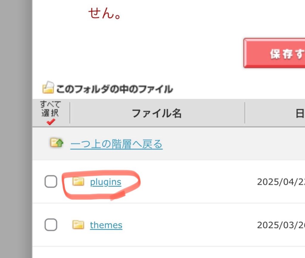 3. ファイル一覧で表示されるので「wp-cotent」を開き、次の画面で「language」を開き、「plugins」を開く。