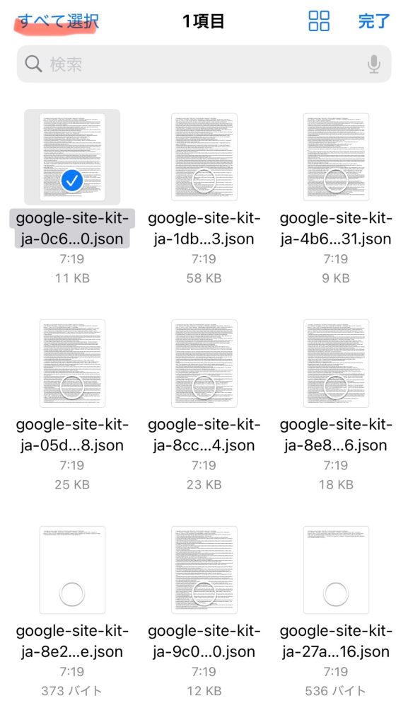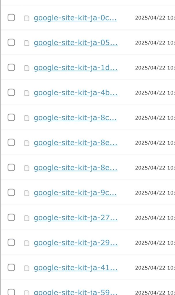4. ファイル一覧が表示されるので「google-site-kit-ja.英数字」のファイルを全て削除します。