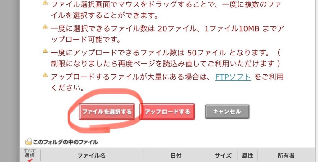 5. そのファイルを開き、その中のファイルを全て選択して画面右上の「開く」を押します。するとレンタルサーバーの画面に戻ります。